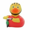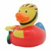 This duck travels by bike! As a real role model it is naturally wearing a sporty helmet on the road. Like this, it always arrives safely and without CO2-emissions.