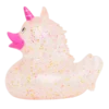 Fabulous cute glitter unicorn duck gift idea. This rubber duck has a beautiful smile that will cheer anyone up. Brighten someone’s day with this pink, gold and silver confetti unicorn.