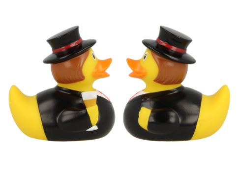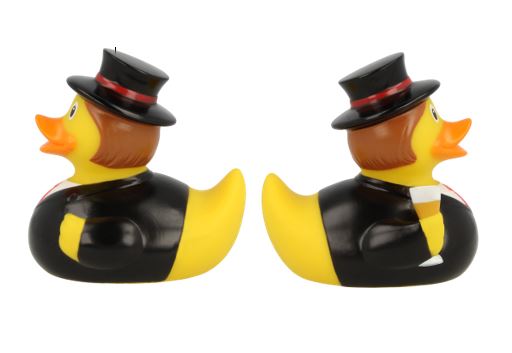Our Groom Rubber Ducks are the perfect, unique gift for the happy couple on their big day! Dressed smartly in a black suit with hat and holding their favourite beverage!