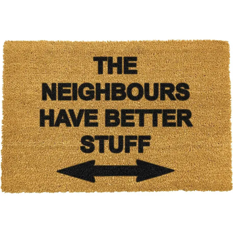 The Neighbours Have Better Stuff Doormat is here to give your guests a chuckle as they enter your house and maybe make your neighbours angry!