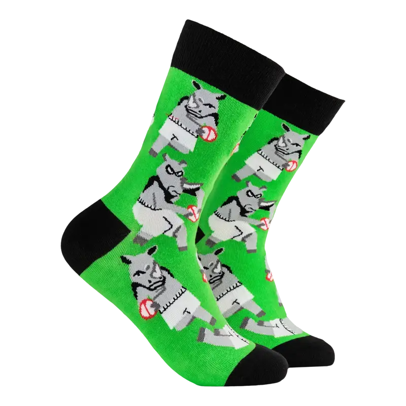 These Rhino Rugby Socks are perfect for anyone who loves rugby and/or rhinos.