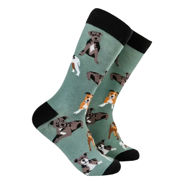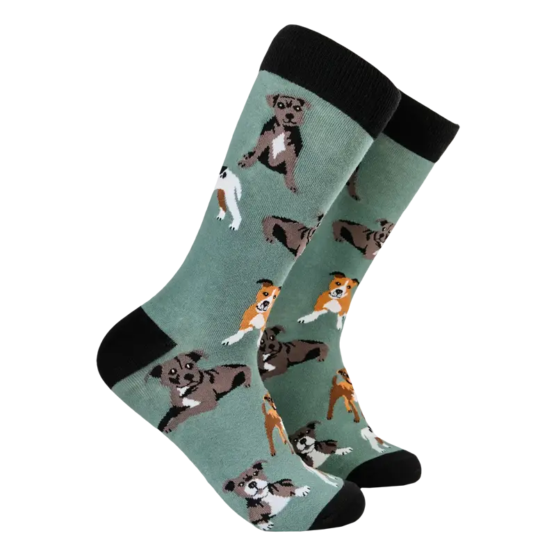 You will always be putting your best paw forwards with these Staffordshire Terrier Socks. And they make pawfect sense for any staffie lover. Ok..well stop with the puns now.